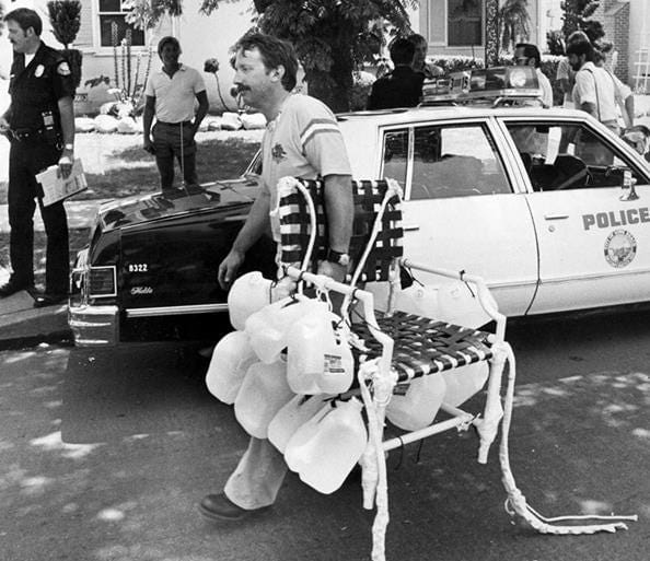 See, Larry Walters, a 33-year-old truck driver, attached 45 helium-filled weather balloons to a Sears lawn chair. He armed himself with some sandwiches, a few beers, a CB radio, and a pellet gun.