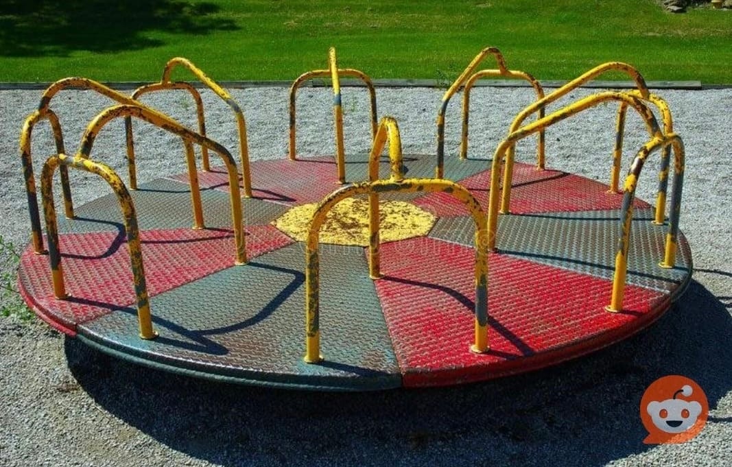 What happened to the old-school jungle gym? And the round, “spinning wheel of death” that was a staple on every playground? Every kid I know was tortured on that thing. What about the metal playground slide that would immediately deliver third degree burns in July. Where did these rights of passage go?