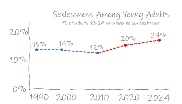 Cheap sex is partially why 24% of adults 18-29 report having no sex in the past year. It’s apparently of little value to them. I hope you aren’t disappointed, but this isn’t just an article about sex.