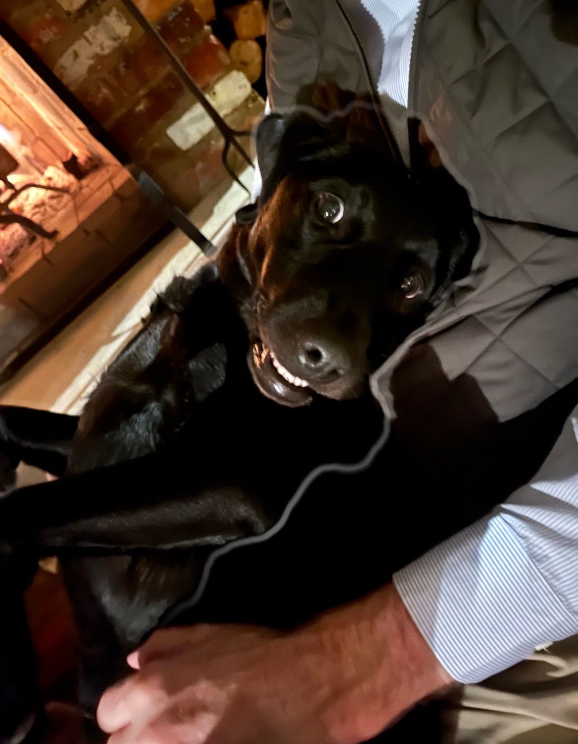 And when I come home — even if I’ve only been gone for fifteen minutes — he completely loses his mind like I just returned from six years fighting the Russians in Ukraine.