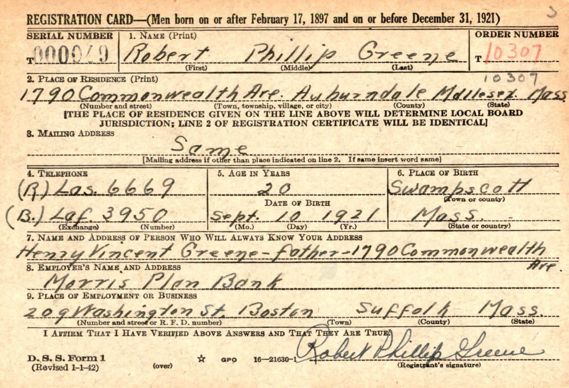 Here is the only thing on the internet that proves he existed: his World War II draft card signed in 1942. He was 21 years old.